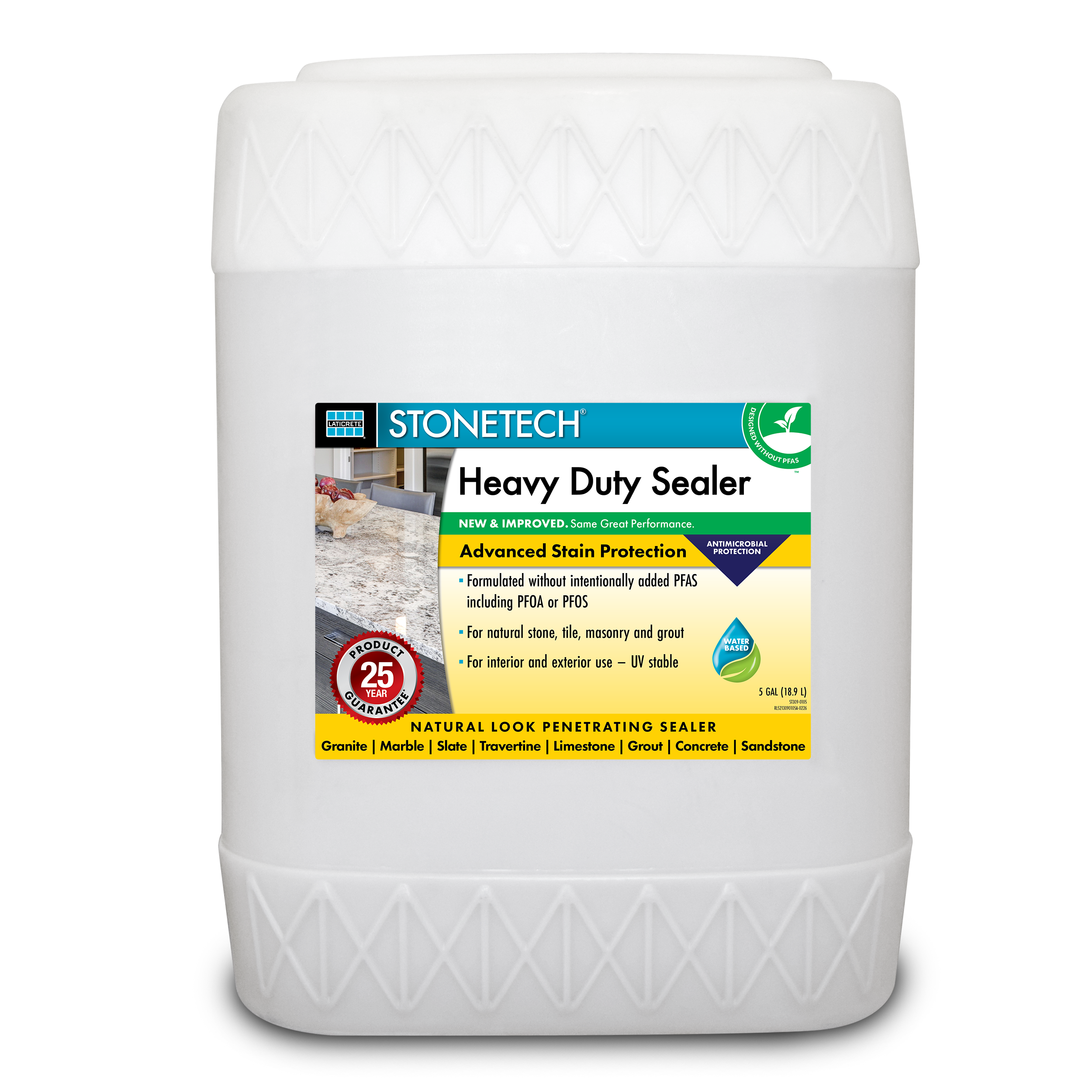 Formulated with built-in antimicrobial technology, STONETECH Heavy Duty Sealer provides product protection against the growth of stain- and odor-causing bacteria, mold, and mildew on the treated surface. Designed without intentionally added PFAS*, this water-based, low-VOC formula offers professional-grade performance with minimal odor and improved indoor comfort. Backed by a 25-year product satisfaction guarantee.