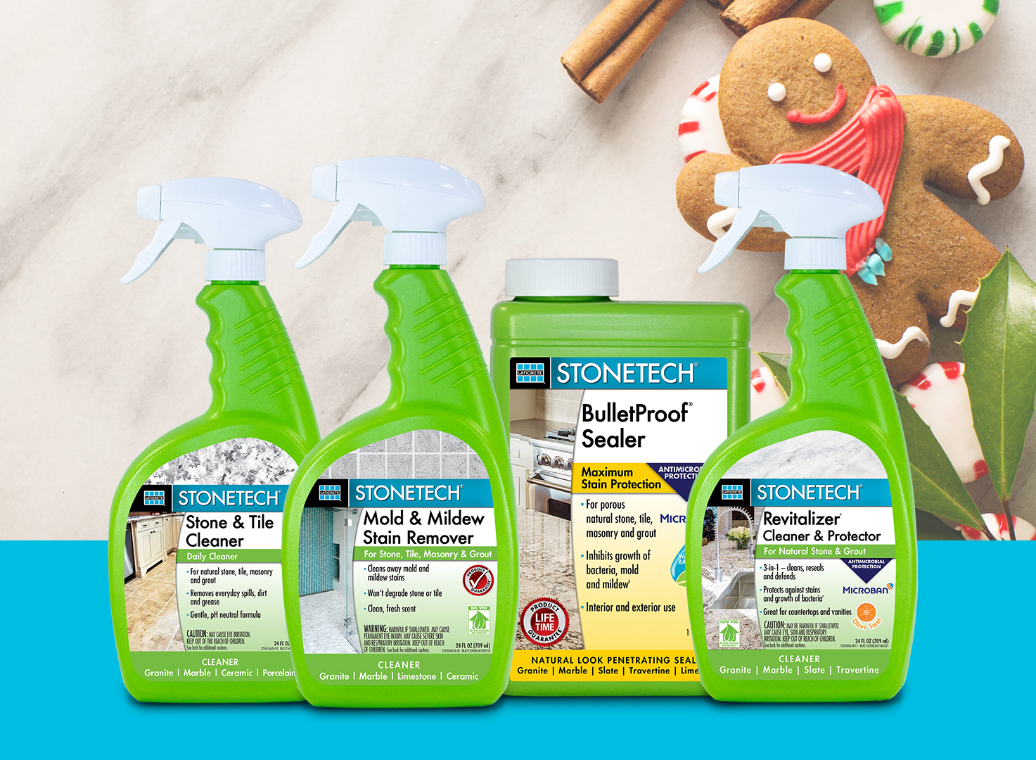 With the holidays come more guests, festive decorations, and family activities. For a quick and effective solution to everyday grime, STONETECH Stone & Tile Cleaner makes wiping away dirt easy without dulling natural stone surfaces.