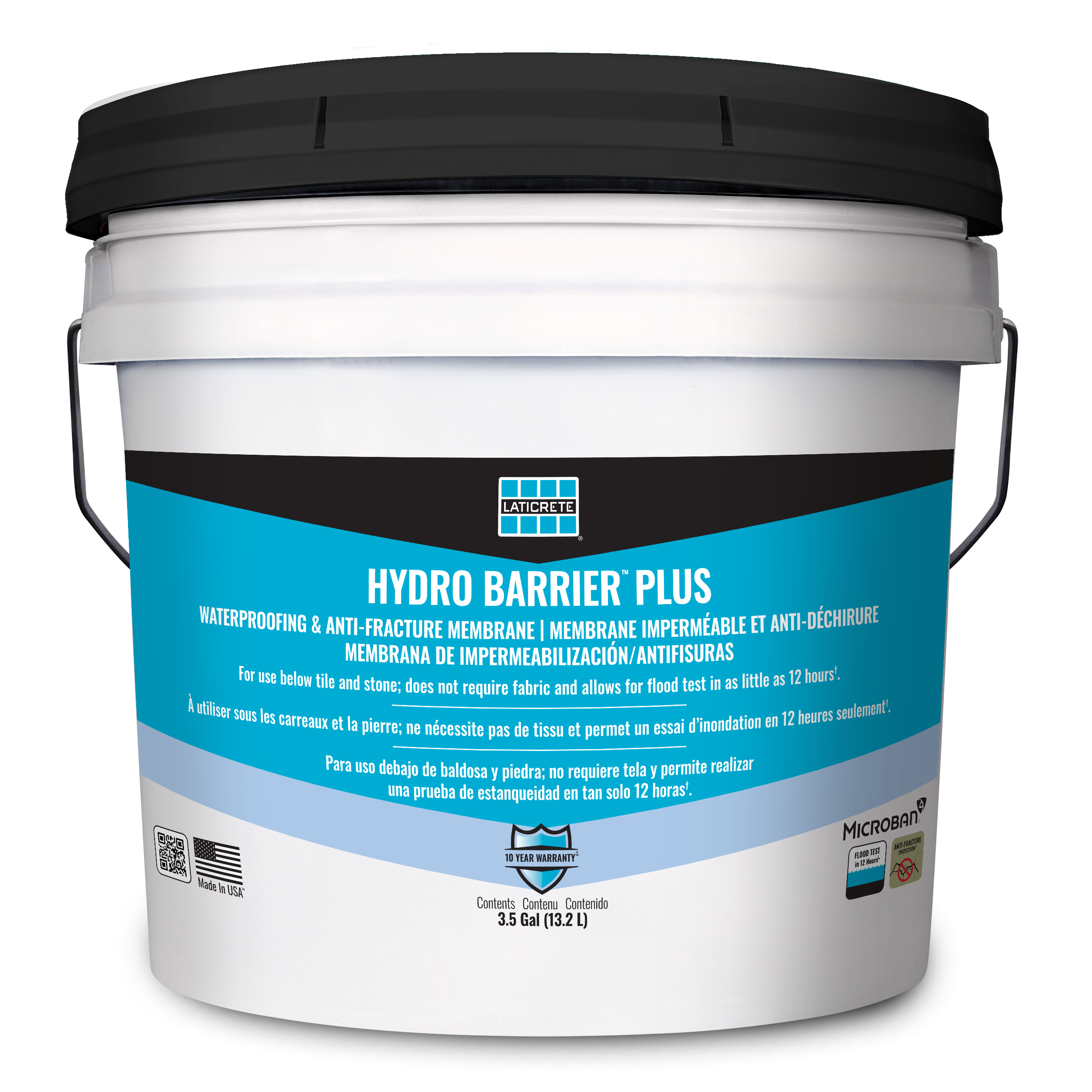 HYDRO BARRIER™ Plus is a thin, load bearing, self-curing liquid rubber polymer which can be easily applied to form a flexible seamless waterproofing membrane / crack isolation membrane. It can be used on interior and exterior, horizontal or vertical surfaces and is approved by IAPMO for use as shower pan liner.