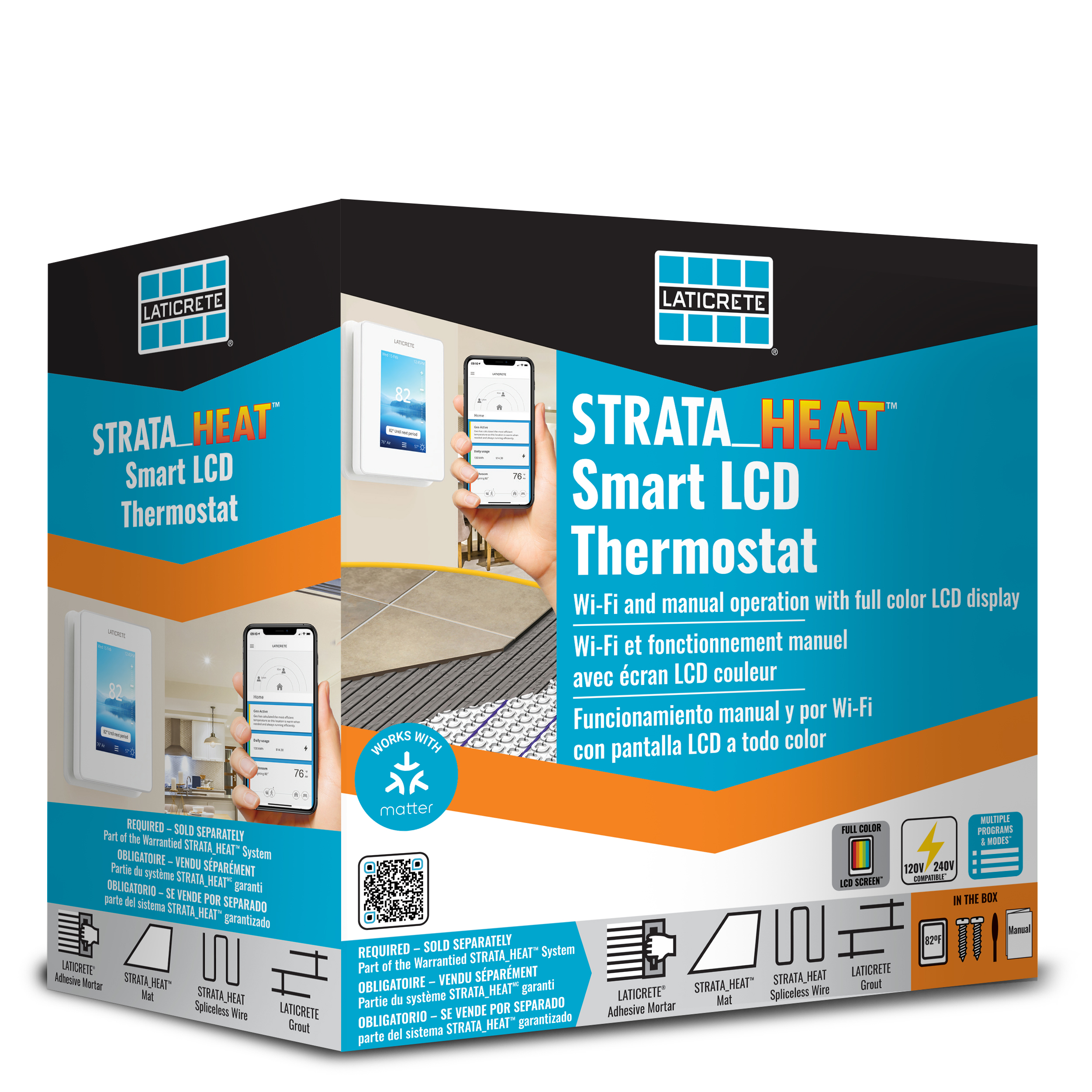 The STRATA_HEAT™ Smart LCD Thermostat is dual voltage 120V/240V Wi-Fi controlled touch screen radiant heat thermostat that is both easy to install and to use. It features a capacitive, full-color touch screen that provides an experience to your smart device of choice. A full cycle of programming that can be done directly through the radiant heat thermostat or through the MY STRATA_HEAT APP.